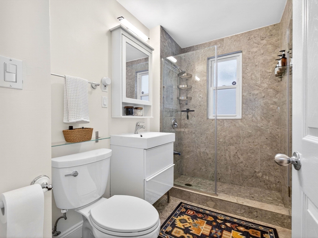 Discover 106 Sawyer Ave, Unit 1, in Dorchester's sought-after Jones Hill. This beautifully updated condo offers a flexible layout with 2-3 bedrooms and a designer kitchen featuring sleek cabinetry, stainless steel appliances, recessed LED lighting, and a pantry/laundry room with custom storage. The flexible 3rd bedroom, dining room or office opens to a spacious private deck, with sweeping western views. The spa-inspired bathroom boasts a tiled shower, glass enclosure, and modern fixtures. Move-in ready, this home also includes central air, brand new furnace, newer windows, updated electrical, a young roof, and a large private basement storage room with high ceilings suitable for workout or craft space. Outside, enjoy a landscaped, tiered yard with lush perennials, fruit trees, and a serene patio. Conveniently located near I-93, Savin Hill T station, shops, restaurants, and the Downer Ave Park with a playground and dog park. Don't miss this blend of modern updates and timeless charm!