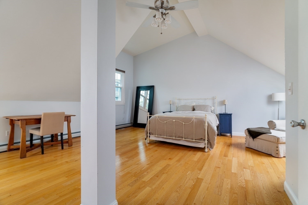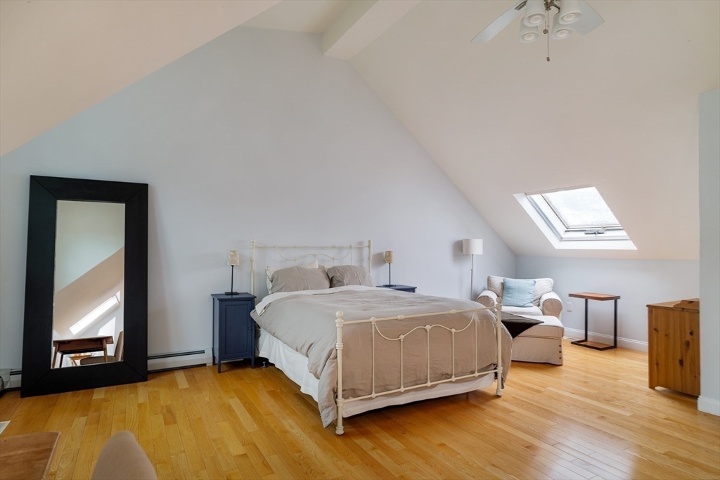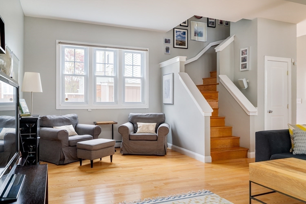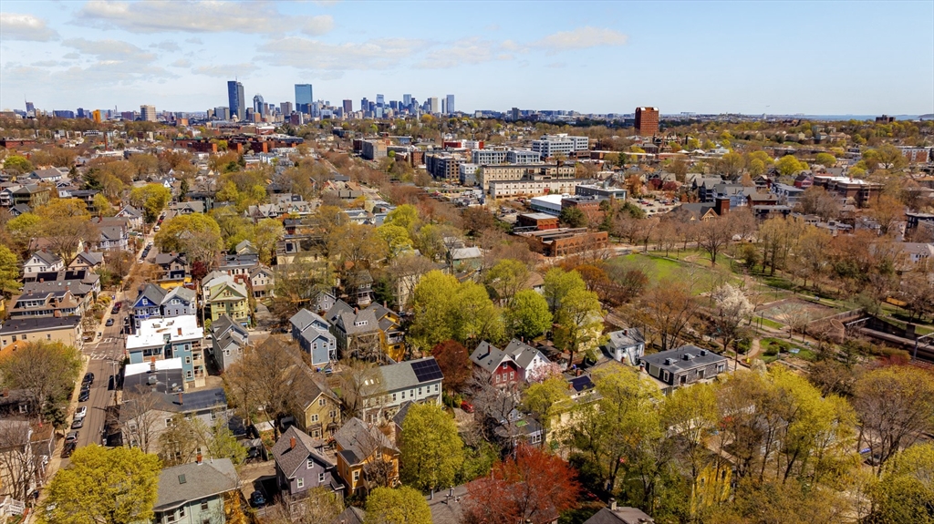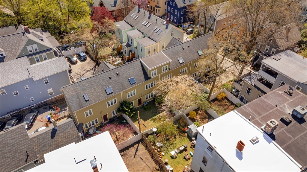 Nestled on a charming, tree-lined street in the heart of Jamaica Plain, this impressive tri-level townhouse offers the perfect blend of modern comfort and urban convenience. The main level welcomes you with a light-filled, open-concept living and dining area designed for seamless entertaining. For the home chef, the adjacent kitchen comes fully equipped with cherry cabinetry, granite countertops, and stainless steel appliances. The 2nd floor features two generously sized bedrooms, a versatile third room, currently set up as a home office, plus full guest bath & laundry. The dramatic top-floor primary suite, an expansive 22x24 ft loft featuring soaring cathedral ceilings, skylights, a walk-in closet, and an en-suite bath. Modern upgrades include a newer high-efficiency gas combi-boiler, and AC. Outside, a private fenced yard awaits your garden or summer dinners, plus two-car parking. Located steps to Stony Brook T and Southwest Corridor Park, this is a rare find in a prime location.