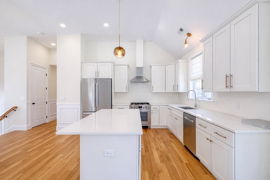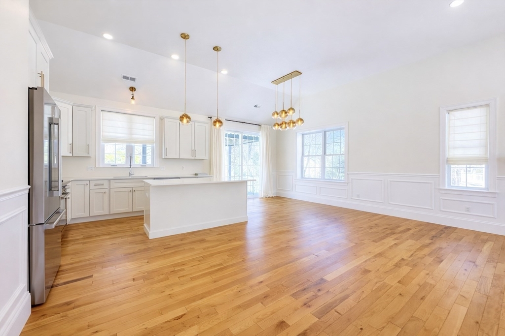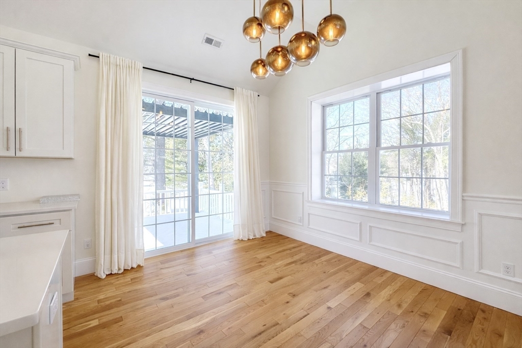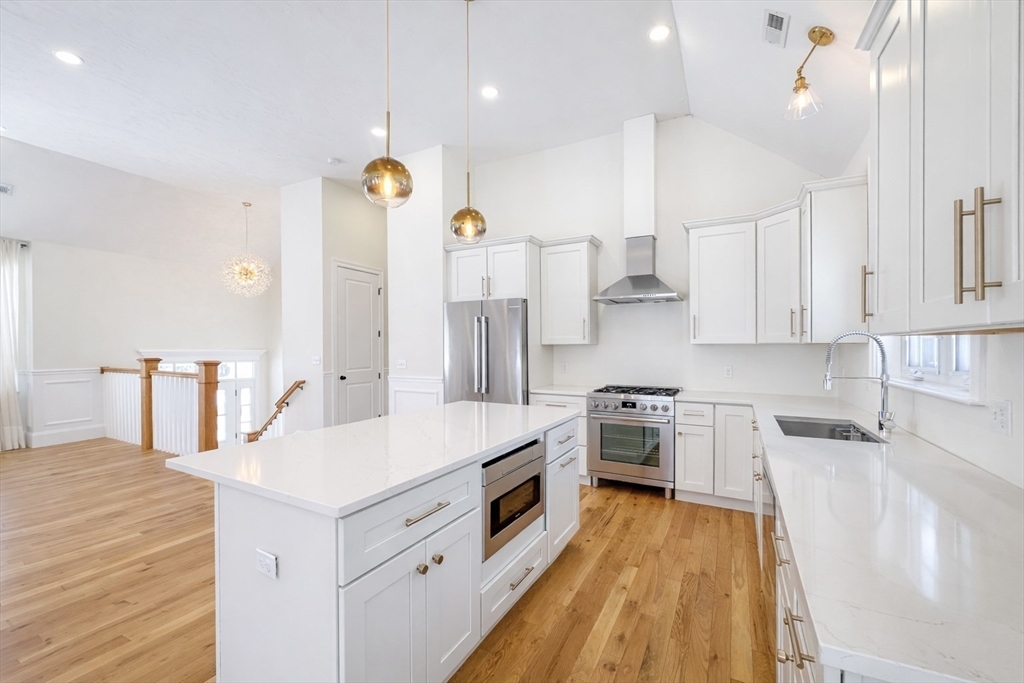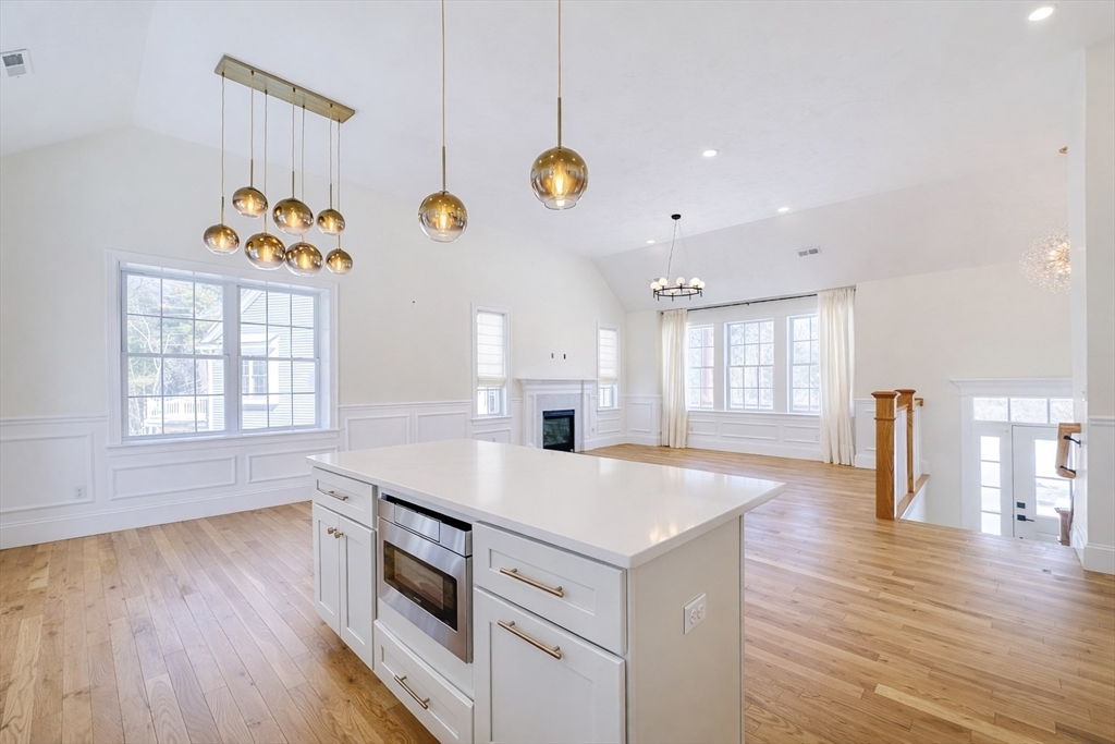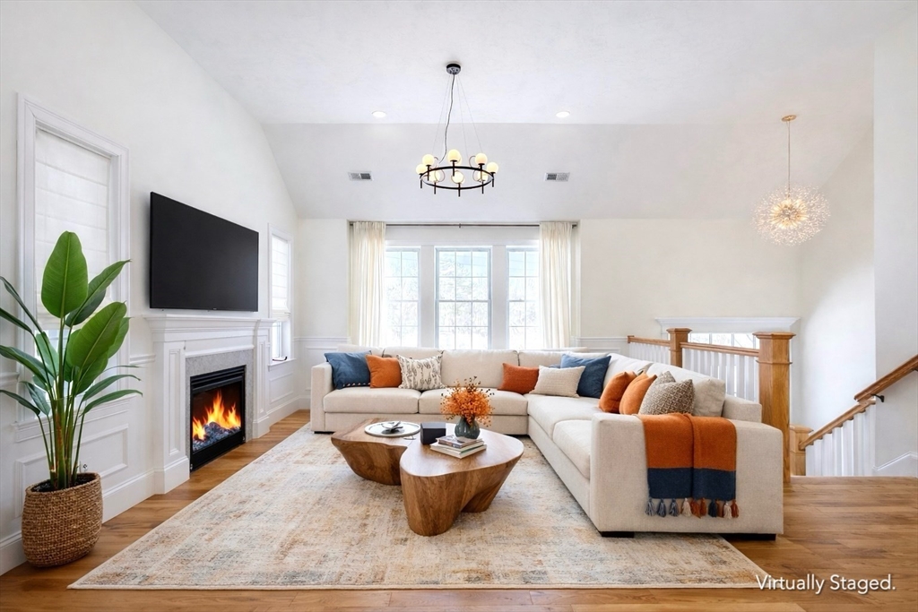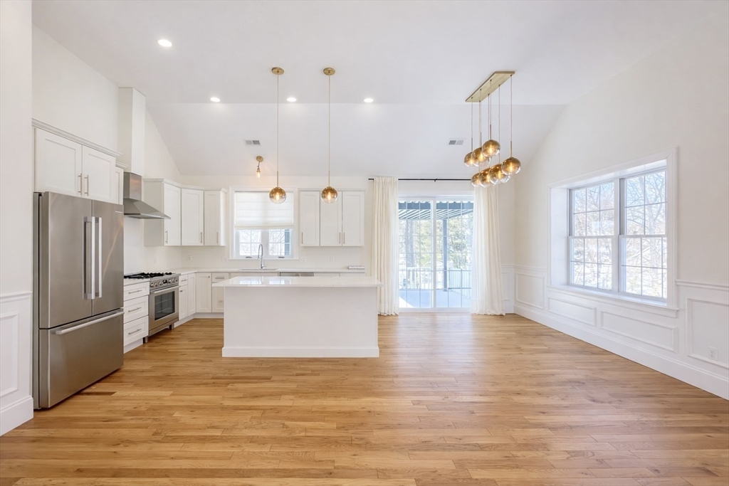 AVAILABLE NOW! This gorgeous 2022 new construction, oversized split level features 3 bedrooms, 3 bathrooms, & over 3,000 square feet of living space. Incredible finishes throughout include hardwood flooring, soaring cathedral ceilings, detailed wainscoting, & oversized windows! Enter to an open concept living area w/ a gas fireplace & plenty of natural light. The chef's kitchen offers a center island, granite countertops, & S/S appliances w/ gas cooking, as well as a dining area w/ sliders to a covered vinyl deck. The 3 spacious bedrooms all feature hardwood, including the luxurious primary w/ cathedral ceilings, an oversized closet, & connected en-suite w/ dual sinks & a tiled shower. The lower level offers a massive family room w/ sliders to a beautiful stone patio, a laundry room, a 3rd full bath, & access to a 2 car garage w/ high ceilings, EV charging, & extra storage... Home water filtration, smart features, & more! Mins. to highways, shopping, dining, parks, & schools!