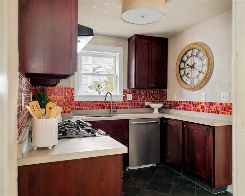 A home as unique as Jamaica Plain itself! This enchanting single-family bungalow is the last of three original mail-order "kit homes" built along Lamartine Street and thoughtfully expanded and renovated to blend historic charm with modern comfort. Morning light fills the welcoming vestibule and open living/dining area, leading to a stylish kitchen with glass-tile backsplash, polished concrete counters, stainless-steel appliances, and handsome wood cabinetry with direct access to the patio for al fresco dining. Two bedrooms extend from the main living space, with a tranquil primary suite overlooking lush terraced gardens and Roxbury puddingstone patios. Set on a generous 6,025 sq ft lot (3F-5000 zoning with lots of expansion potential) with private parking-just moments to Stony Brook Station, Centre Street's cafes, shops and restaurants and the Southwest Corridor -this Jamaica Plain gem is truly one of a kind.