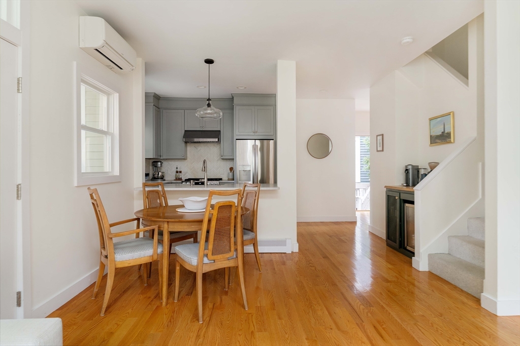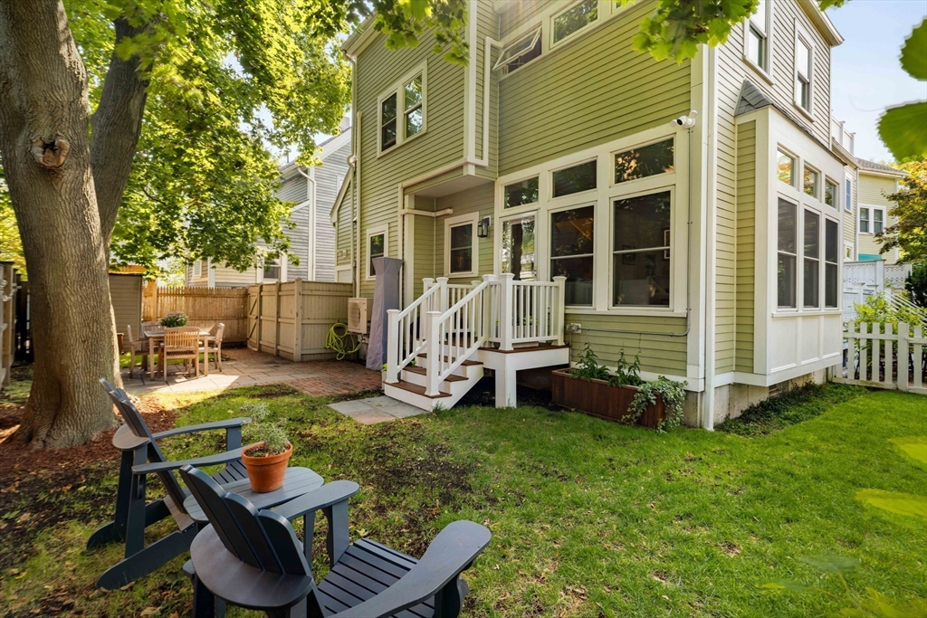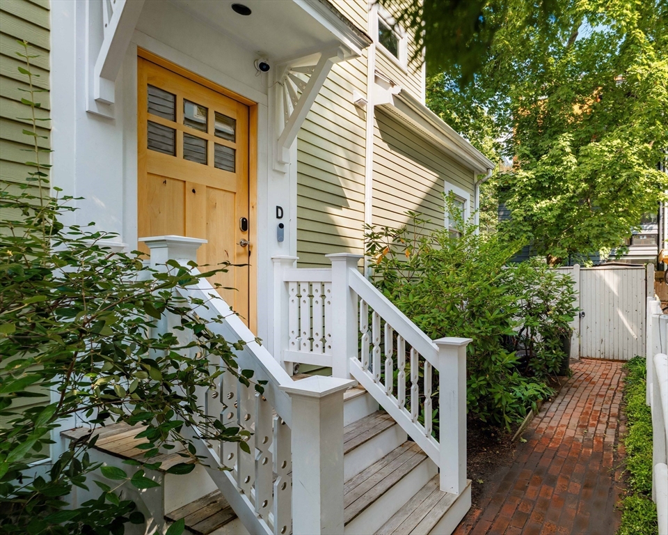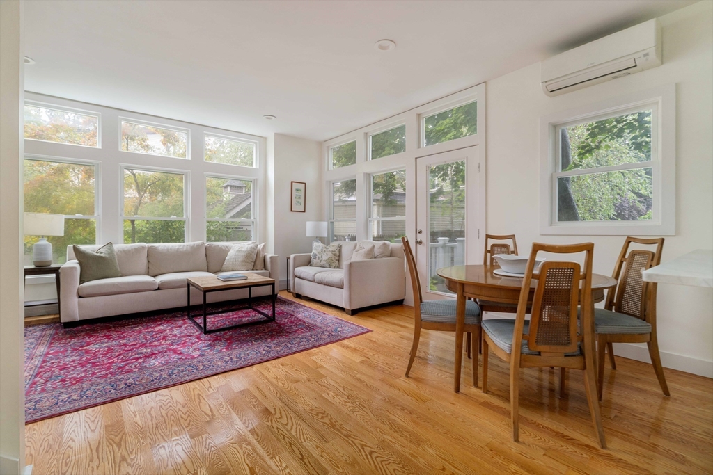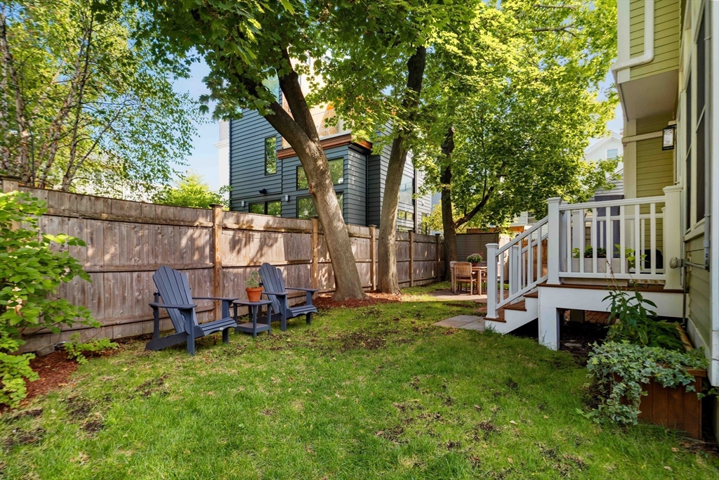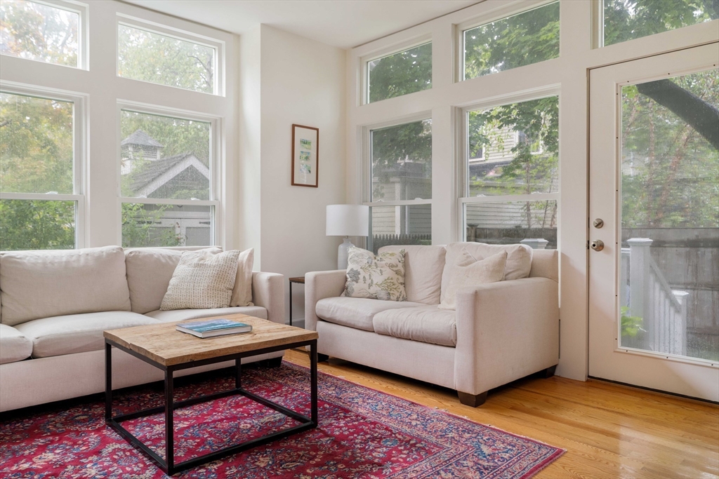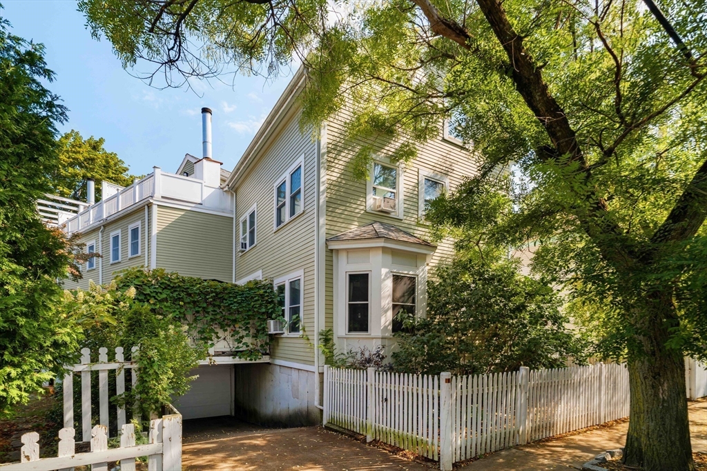 Experience modern elegance in this beautifully renovated 3-level Cambridge condo that lives like a single-family home! Thoughtfully updated in 2022, this 1,371 sq ft residence features a sleek kitchen, chic half bath, new hardwood floors, a wood-burning fireplace, oversized windows with tranquil tree views, and direct access to a private fenced-in backyard. Upstairs offers 2 bedrooms and a full bath with in-unit laundry. The top level adds a versatile 3rd bedroom or office/studio with cathedral ceilings, skylights, a brand new full bath, and a coveted private roof deck. Additional perks include mini-splits for central cooling and supplemental heating, garage parking, and extra storage. Ideally located near Kendall, Central, Inman, and Union Squares, this home blends modern comfort with the vibrant charm of Cambridge living.