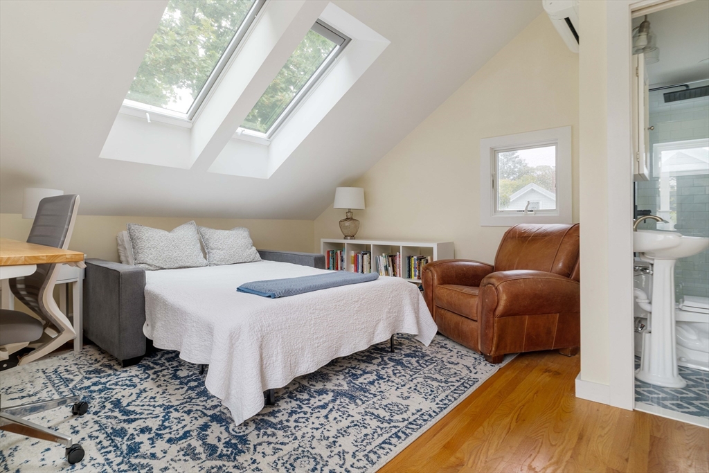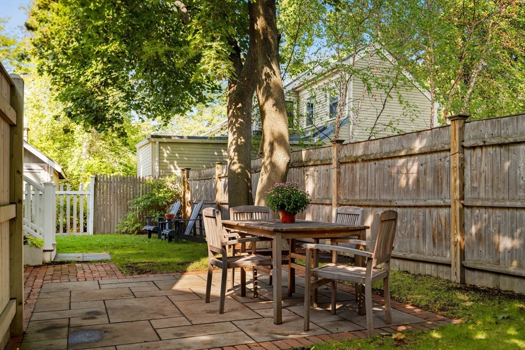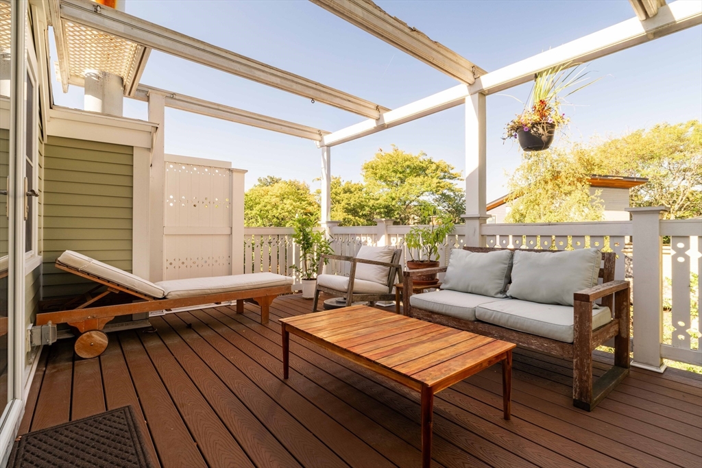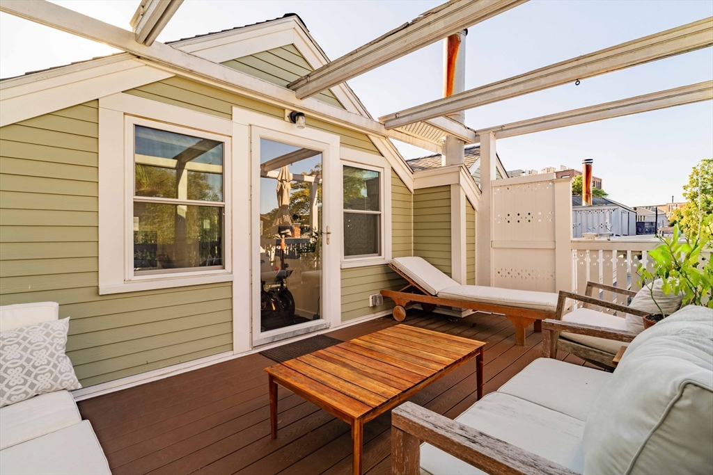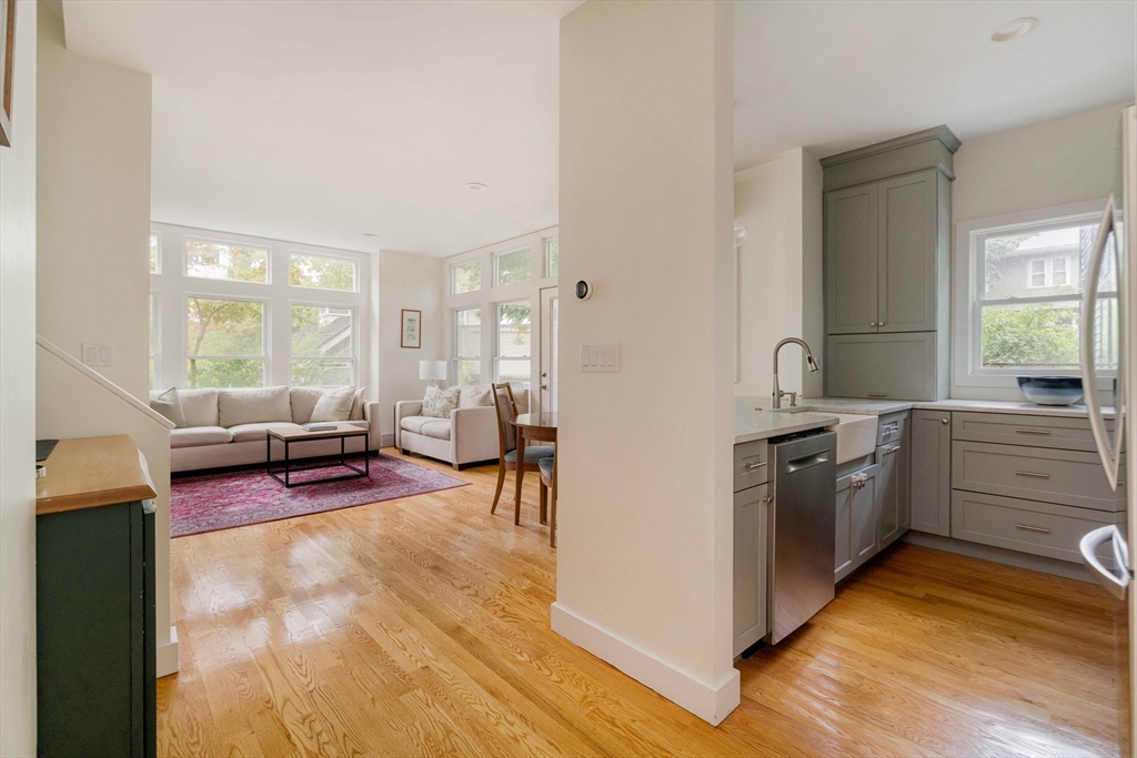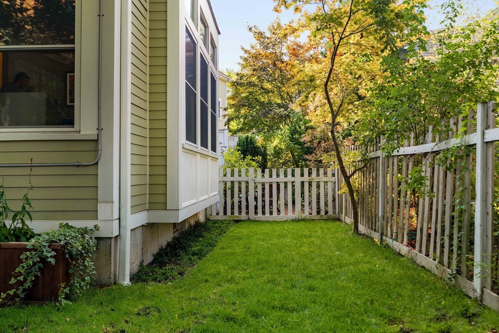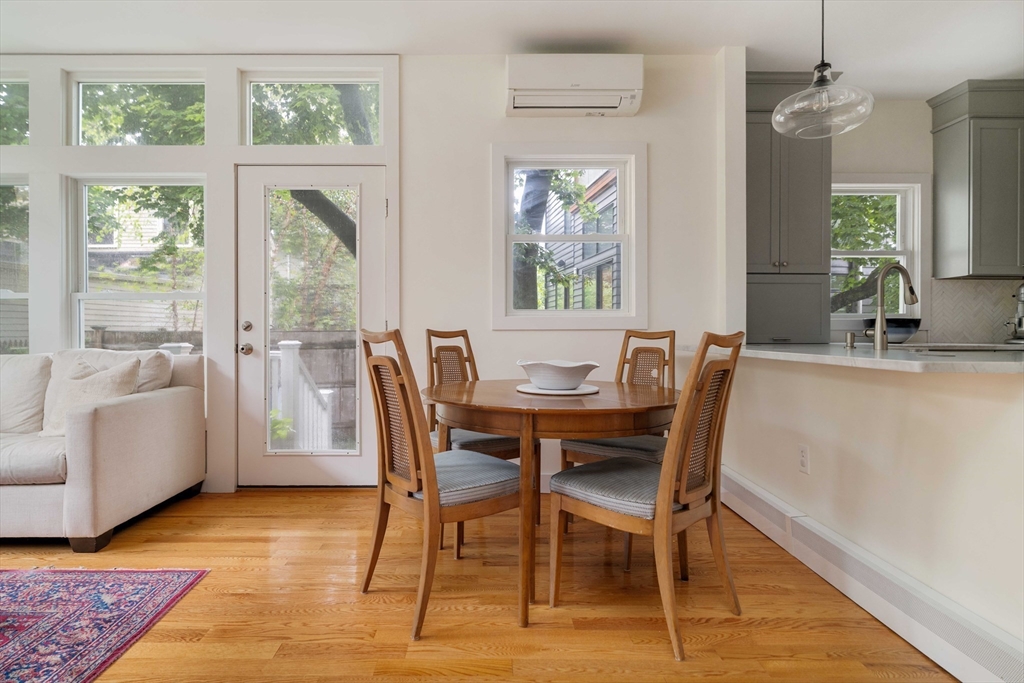 Experience modern elegance in this beautifully renovated 3-level Cambridge condo that lives like a single-family home! Thoughtfully updated in 2022, this 1,371 sq ft residence features a sleek kitchen, chic half bath, new hardwood floors, a wood-burning fireplace, oversized windows with tranquil tree views, and direct access to a private fenced-in backyard. Upstairs offers 2 bedrooms and a full bath with in-unit laundry. The top level adds a versatile 3rd bedroom or office/studio with cathedral ceilings, skylights, a brand new full bath, and a coveted private roof deck. Additional perks include mini-splits for central cooling and supplemental heating, garage parking, and extra storage. Ideally located near Kendall, Central, Inman, and Union Squares, this home blends modern comfort with the vibrant charm of Cambridge living.