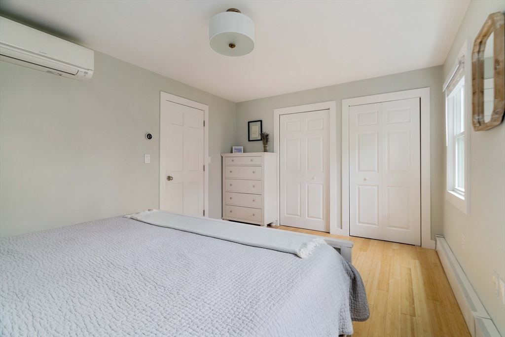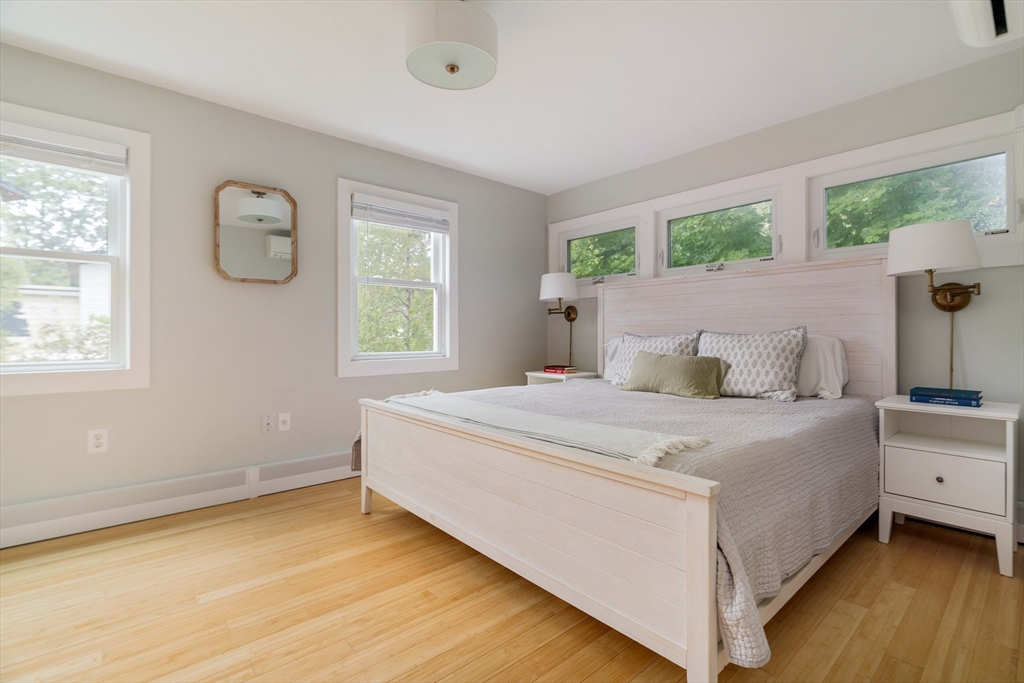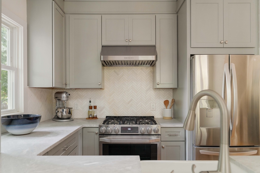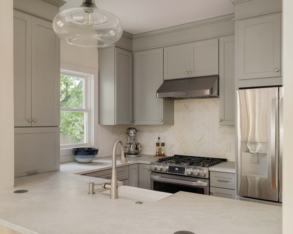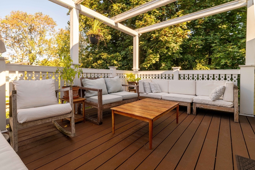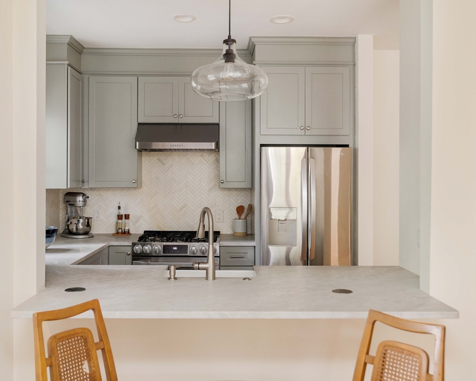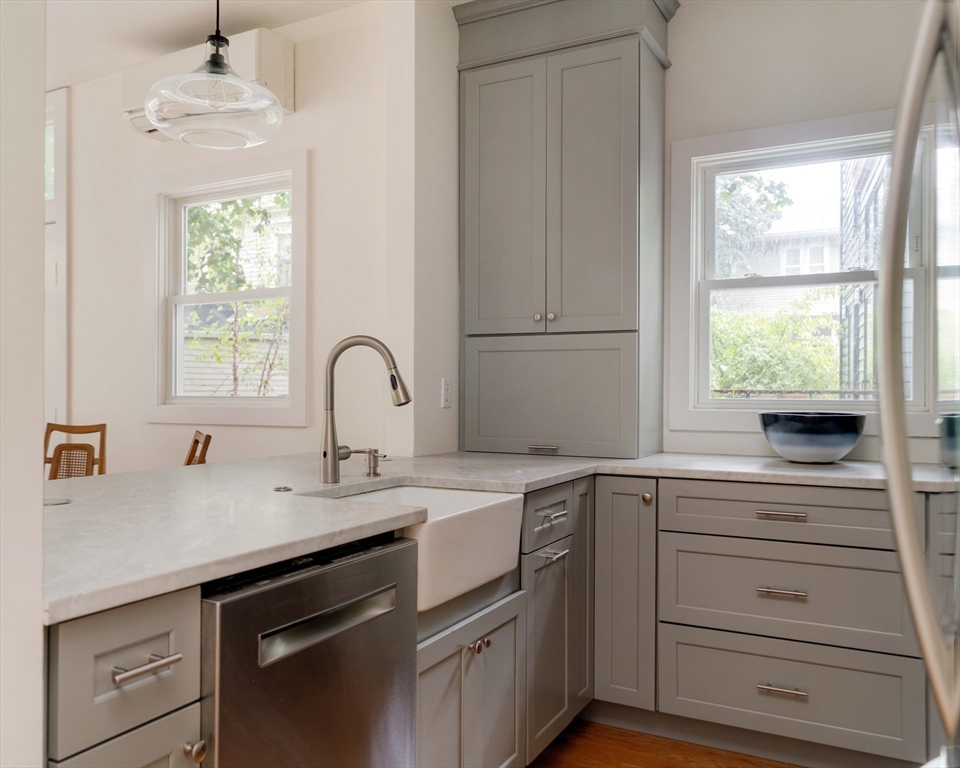 Experience modern elegance in this beautifully renovated 3-level Cambridge condo that lives like a single-family home! Thoughtfully updated in 2022, this 1,371 sq ft residence features a sleek kitchen, chic half bath, new hardwood floors, a wood-burning fireplace, oversized windows with tranquil tree views, and direct access to a private fenced-in backyard. Upstairs offers 2 bedrooms and a full bath with in-unit laundry. The top level adds a versatile 3rd bedroom or office/studio with cathedral ceilings, skylights, a brand new full bath, and a coveted private roof deck. Additional perks include mini-splits for central cooling and supplemental heating, garage parking, and extra storage. Ideally located near Kendall, Central, Inman, and Union Squares, this home blends modern comfort with the vibrant charm of Cambridge living.