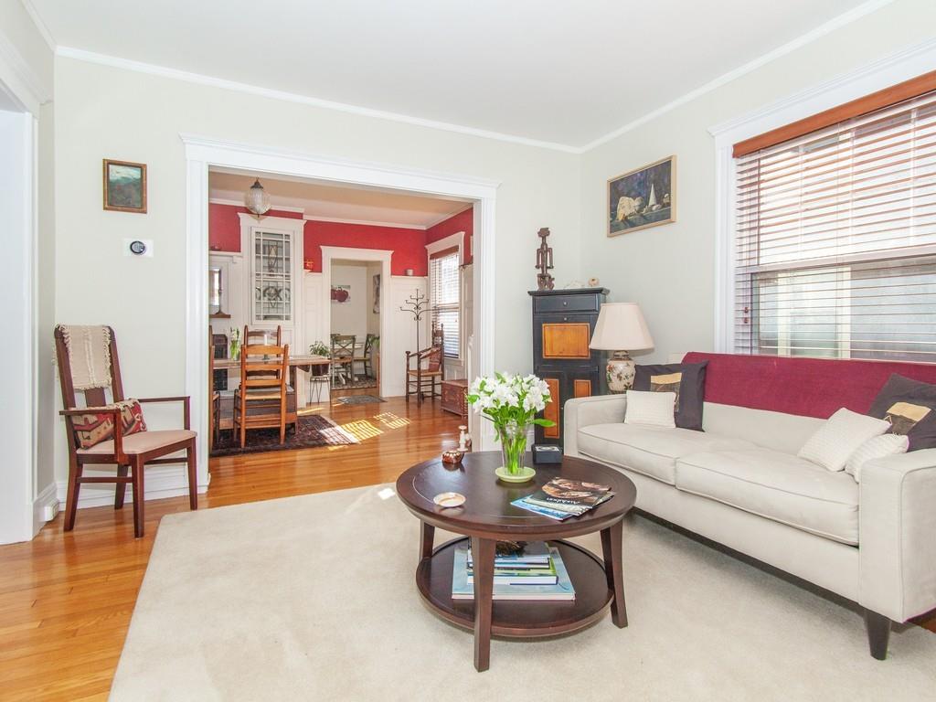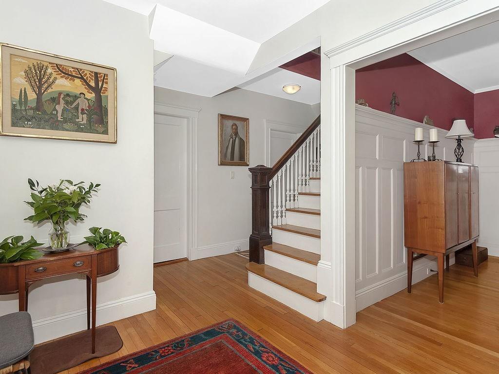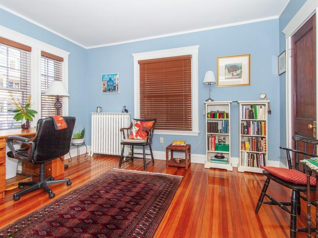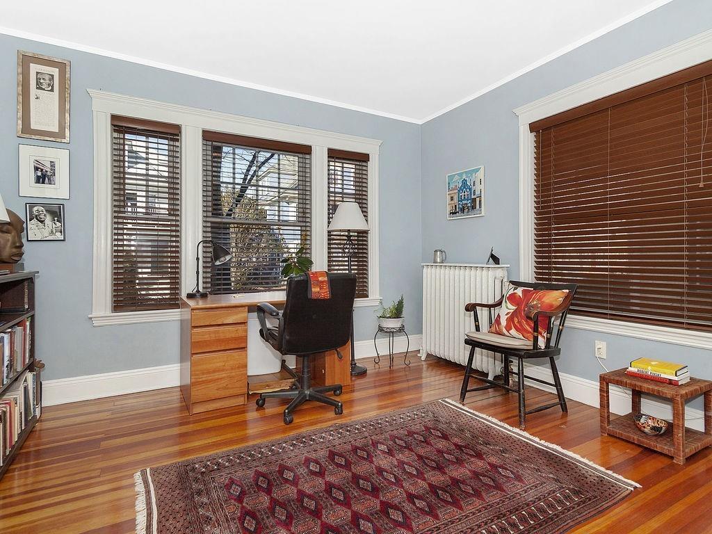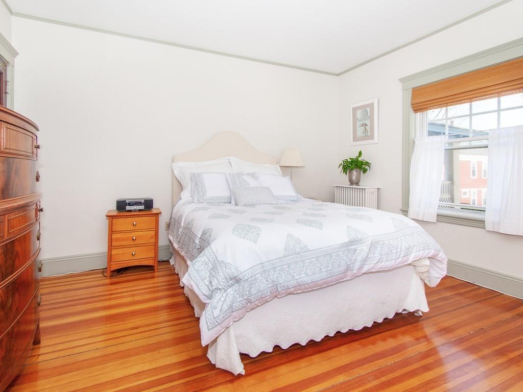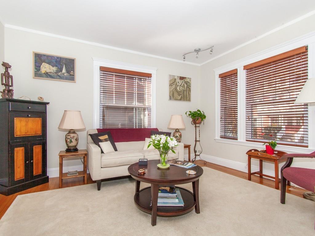 Philly duplex with nearby Olmstead Emerald Necklace, Pond and Arboretum have brought great pleasure to its owners. The home has many of today’s amenities while maintaining yesterday’s architectural features. An inviting dining room, with oak fireplace bordered by leaded glass and custum cabs, opens to a sunny living room. Significant moldings, high ceilings, and gorgeous hardwood floors are in nearly every room. Well designed eat-in Kit, overlooking the garden, feats prof grade stainless steel appliances, ample cherry cabs, and sunny eating area. 1st floor also has 2 bedrooms and a full bath. Upstairs Master en-suite with adjusted room potential as nursery or home office. The Master bathroom soaking tub and double shower are anchored by large antique vanity. Lower level has a laundry room, plenty of storage, new boiler and hardwood floors, and direct access to the backyard. Mature perennial plantings + magnificent birch tree provide pleasure throughout 3-seasons. Pkg is avail outside the backdoor. #39 bus at end of Prince St. provides easy travel to Boston. Close to, Centre/South St. shops, restaurants, new JP Library, and more.