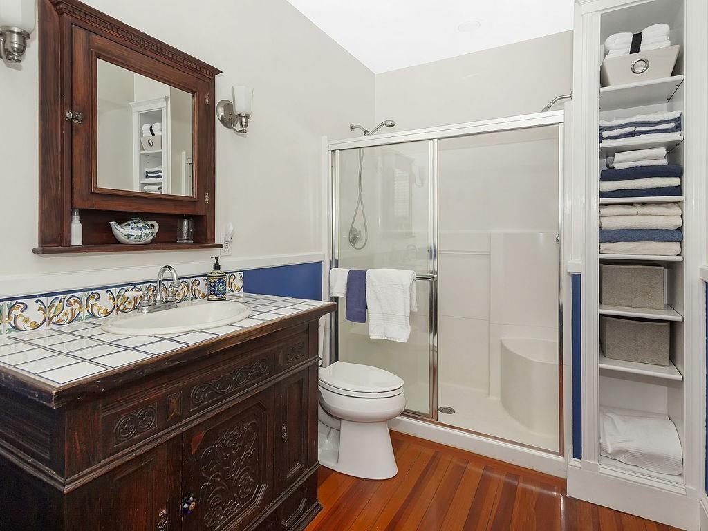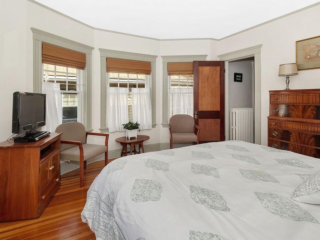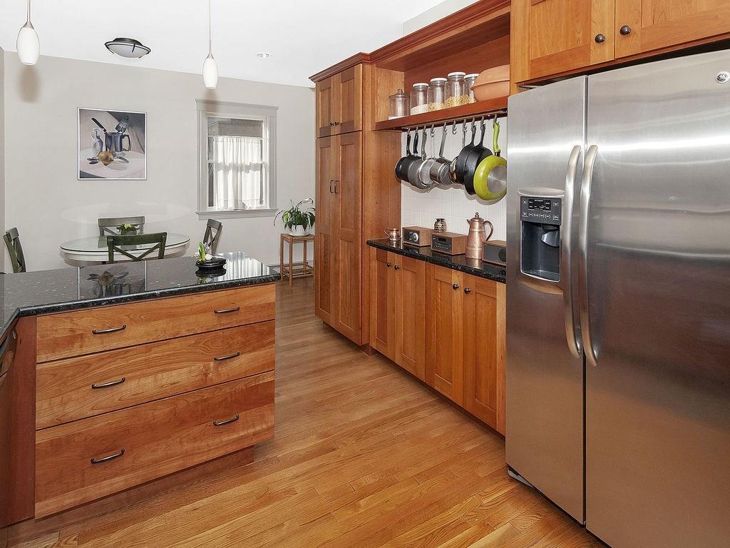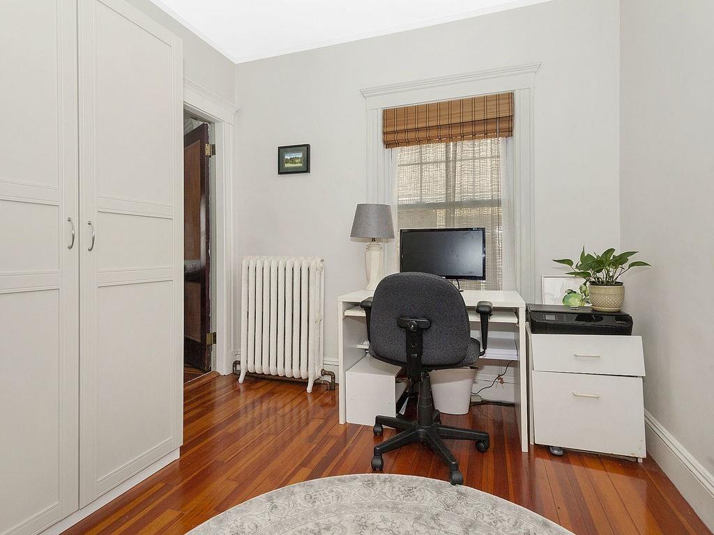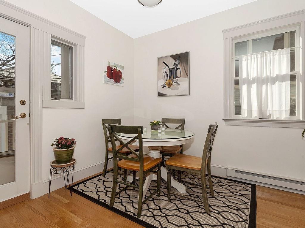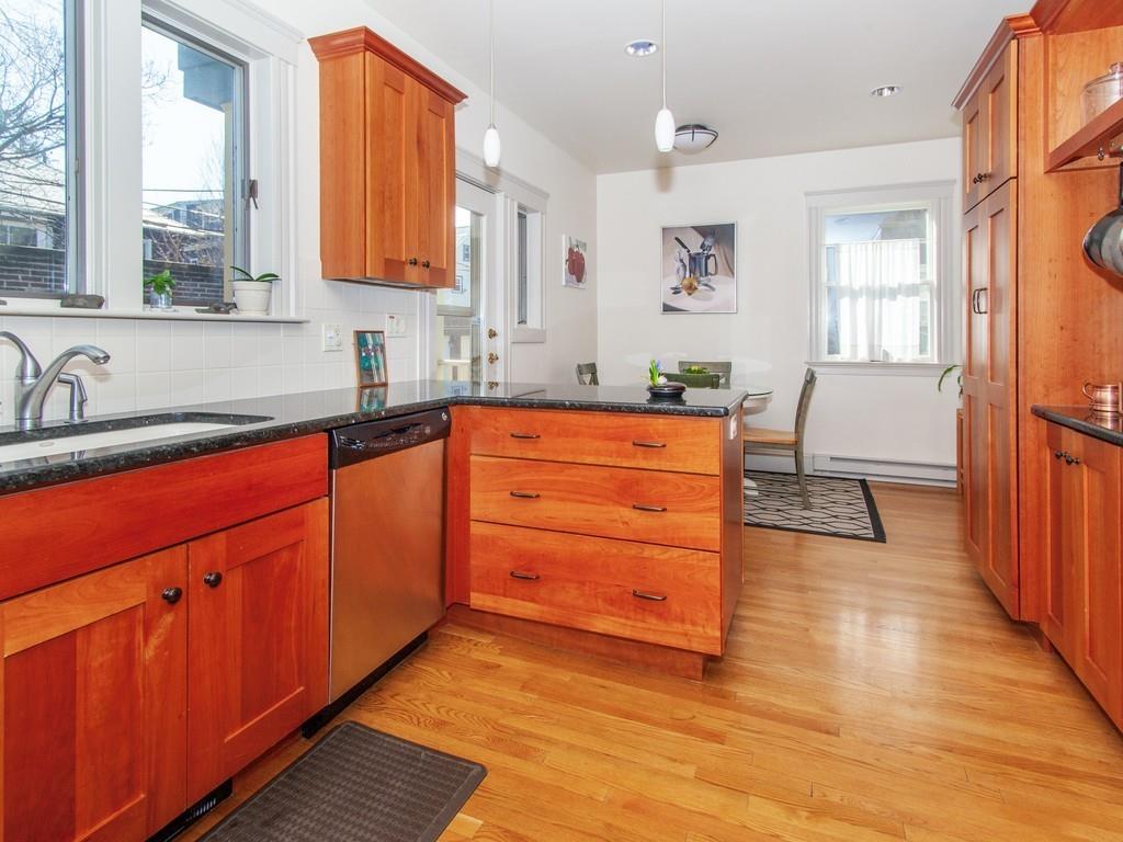 Philly duplex with nearby Olmstead Emerald Necklace, Pond and Arboretum have brought great pleasure to its owners. The home has many of today’s amenities while maintaining yesterday’s architectural features. An inviting dining room, with oak fireplace bordered by leaded glass and custum cabs, opens to a sunny living room. Significant moldings, high ceilings, and gorgeous hardwood floors are in nearly every room. Well designed eat-in Kit, overlooking the garden, feats prof grade stainless steel appliances, ample cherry cabs, and sunny eating area. 1st floor also has 2 bedrooms and a full bath. Upstairs Master en-suite with adjusted room potential as nursery or home office. The Master bathroom soaking tub and double shower are anchored by large antique vanity. Lower level has a laundry room, plenty of storage, new boiler and hardwood floors, and direct access to the backyard. Mature perennial plantings + magnificent birch tree provide pleasure throughout 3-seasons. Pkg is avail outside the backdoor. #39 bus at end of Prince St. provides easy travel to Boston. Close to, Centre/South St. shops, restaurants, new JP Library, and more.