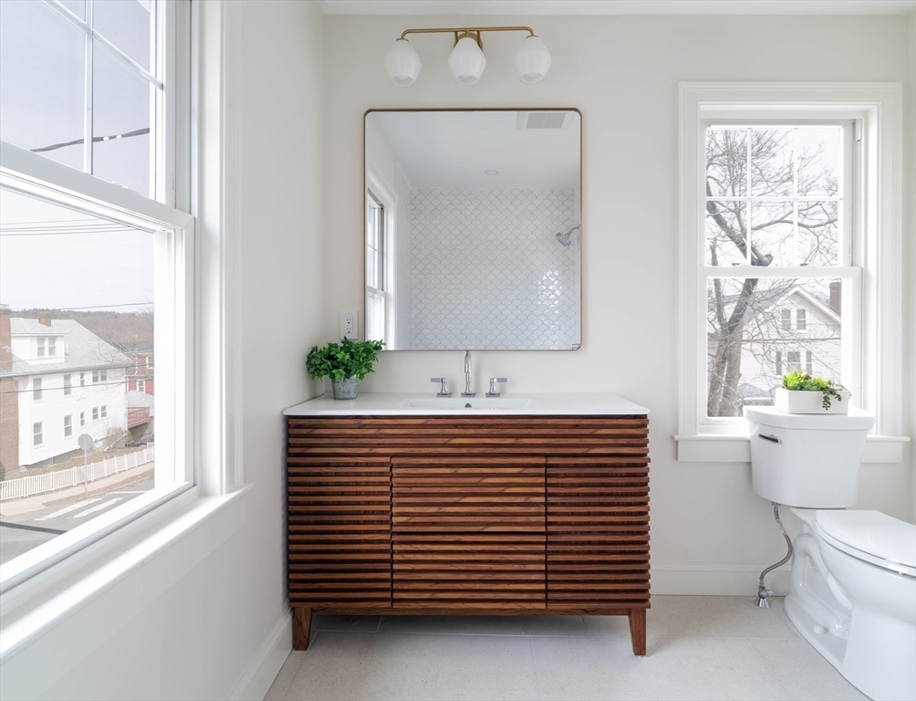Welcome to 652 Belmont Street, Unit 2, a beautifully reimagined multi-level condo offering two floors of spacious living where classic New England charm meets a sophisticated modern refresh. Rich oak hardwood floors and sun-drenched living spaces set the tone, while a brand new eat-in kitchen impresses with dual-tone cabinetry with gold hardware, marble subway tile, and a charming pantry. Both bathrooms are brand new, including a primary suite with a private en-suite. Three outdoor spaces make this home truly special: a covered deck off the kitchen, a balcony off the living room, and an exclusive paver patio. Upstairs, a vaulted bonus room and flexible sitting area offer endless possibilities. A private side street entrance adds everyday convenience. Two tandem parking spots, exclusive storage, and in-unit laundry complete the package. Perched on the Belmont-Watertown line, Arsenal Yards, MBTA bus access, and the best of Greater Boston living are right at your doorstep.