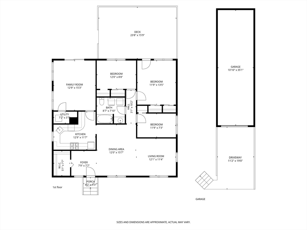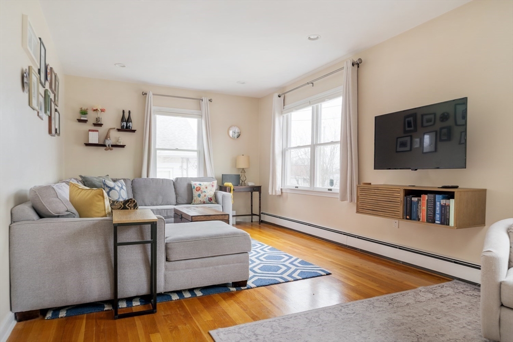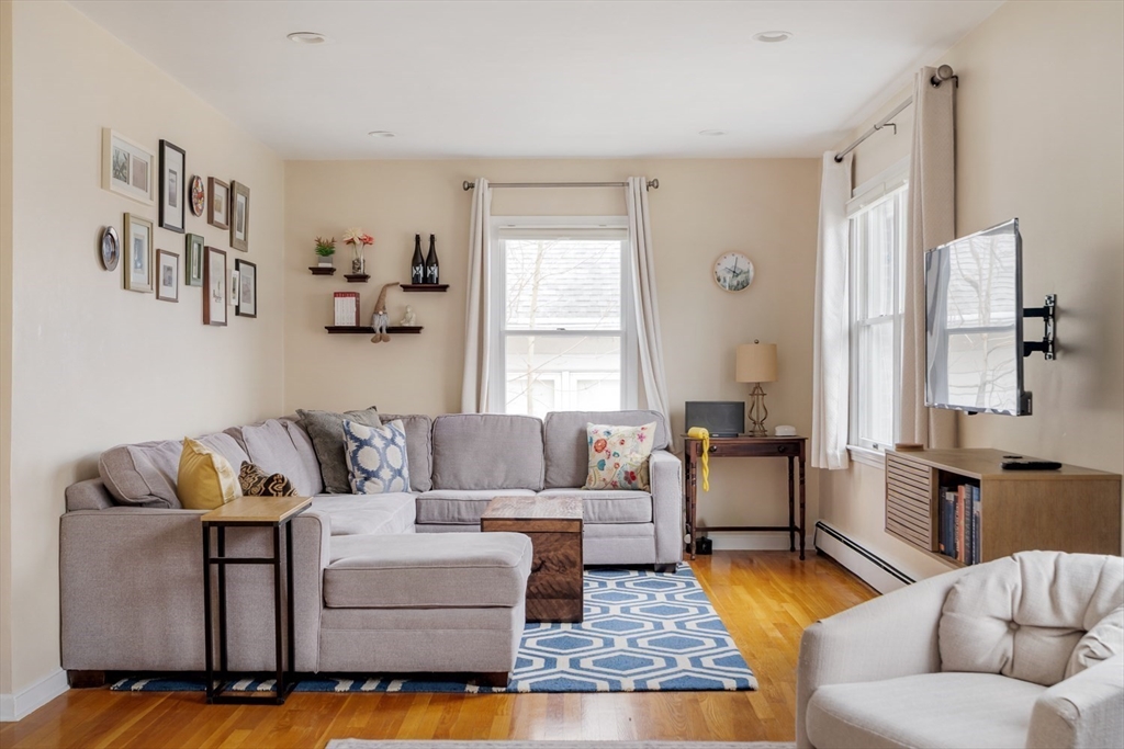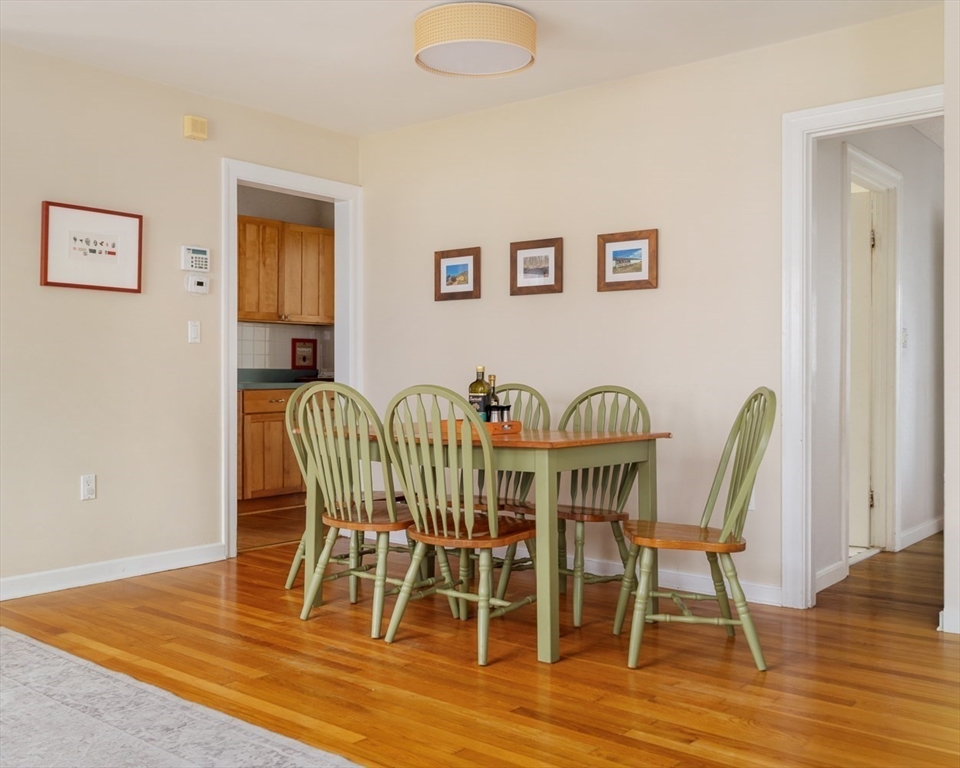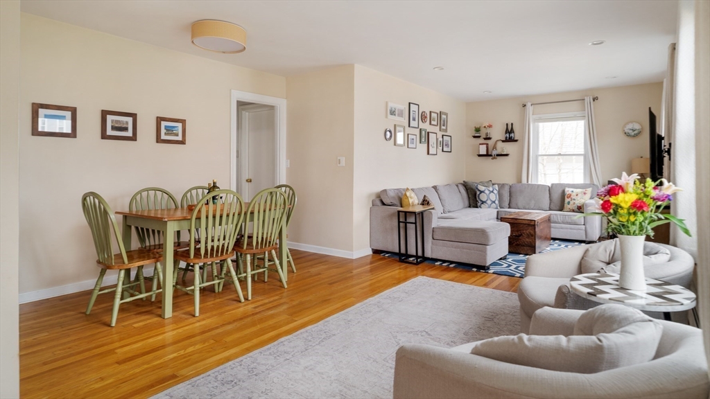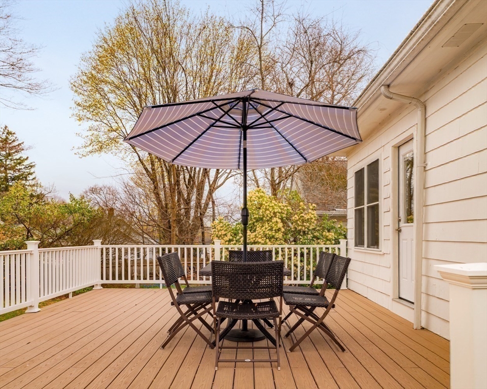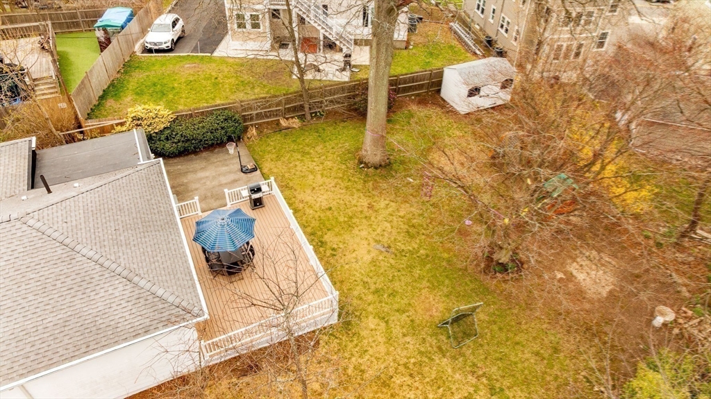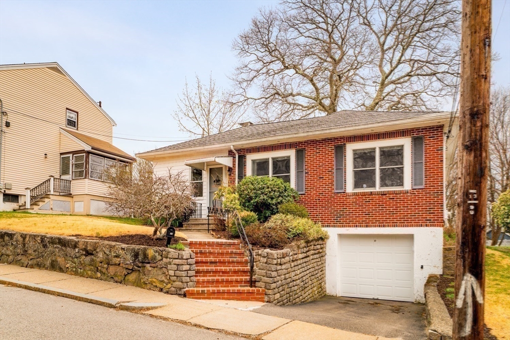Easy single family living in this brick front ranch w/ garage parking just off Centre Street in West Roxbury. The welcoming entry foyer steps up to the open living/dining room, a central gathering space w/ recessed lighting and hardwood floors. The kitchen has wall wrapped cabinetry, nostalgic green laminate counters and white tile backsplash, a tidy and functional space with room for vision. Head to the sunken den, bright & inviting, with direct access to the expansive yard - level, shaded, and ripe for play, gardening or quiet reflection. Lining the hallway are three bedrooms, serviced by a generous tiled bath with laundry. The primary bed has double closets and a windowed door opening to the oversized composite deck and yard beyond. A deep heated garage under the house provides tremendous storage and peace of mind in the winter months. Nestled near the Roxbury Latin campus, with quick access to Centre's retail & restaurants, Trader Joes, Parkway Y, VFW, Millennium Park & Dedham.